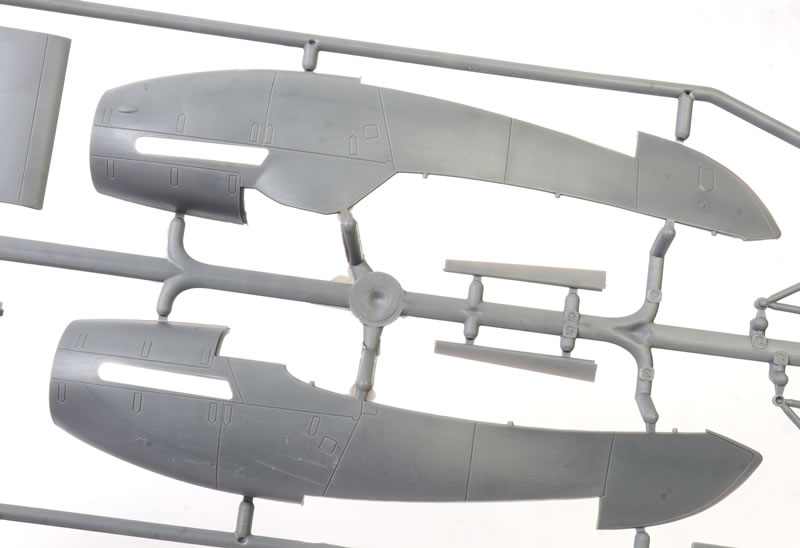 The grey plastic parts are very well moulded. Surface detail is restrained, with crisp recessed panel lines throughout. Most of the large surfaces are smooth and largely free of texture, which is entirely appropriate given the Hornet’s predominantly wooden airframe.