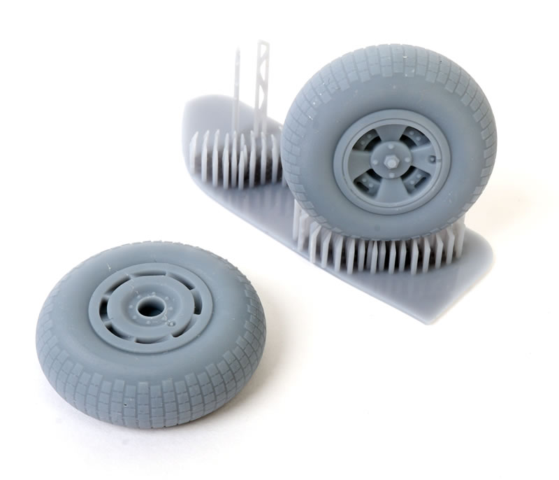 The main wheels are 3D-printed resin items, while the anti-shimmy tail wheel and strut assembly are moulded in plastic.