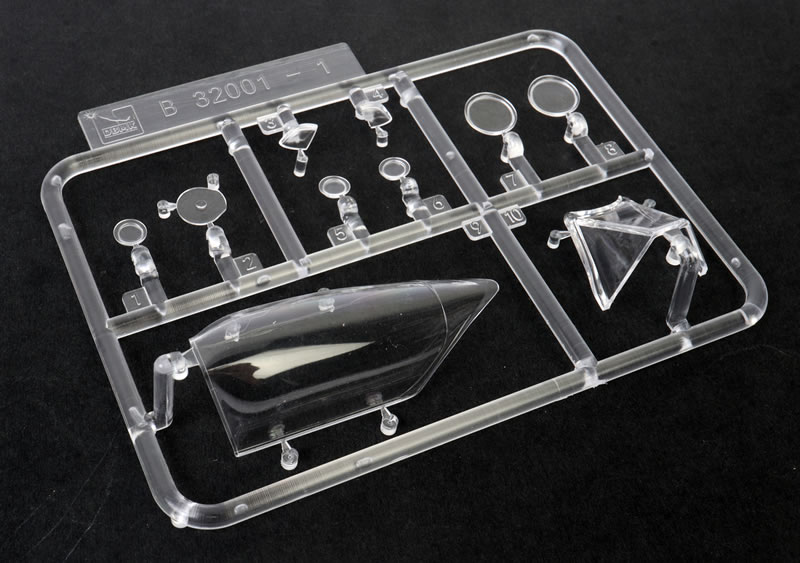 200 grey plastic parts; 32 3D-printed parts; 56 parts on a single colour photo-etched fret; white self-adhesive die-cut vinyl masking sheet; three marking options on a large, glossy Cartograf decal sheet. A separate stencil decal sheet is also included. |