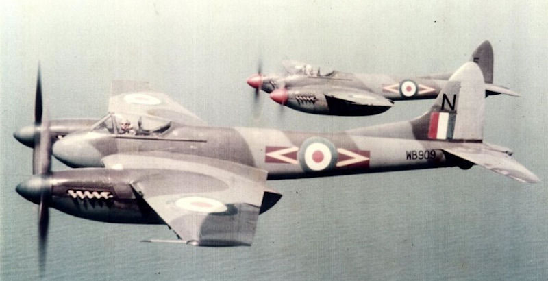 Rather than starting from scratch, de Havilland elected to evolve the highly successful Mosquito concept into a smaller, lighter and more aerodynamically refined aircraft optimised specifically for fighter duties. The result was a sleek, low-drag airframe built largely of wood, powered by two Rolls-Royce Merlin engines and designed around a single-seat cockpit with exceptional all-round visibility.