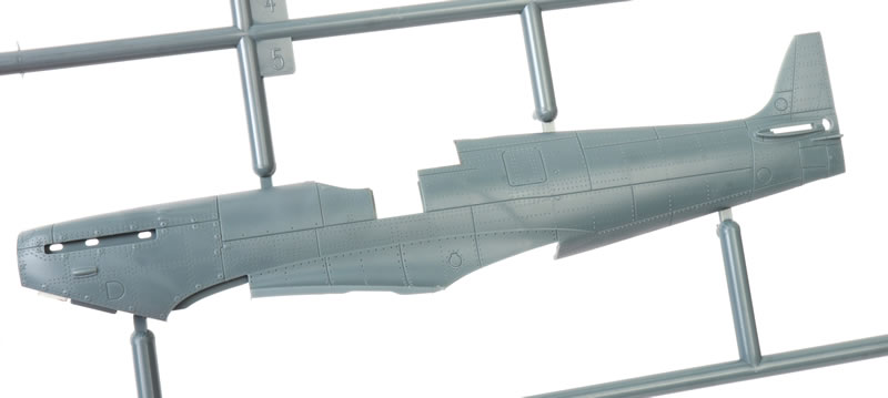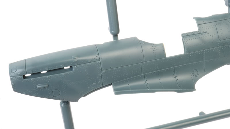 The two fuselages are contained on Sprues K (early version) and L (late version), with the wings on Sprues E (lower wing half) and Sprue G (upper wing halves). The fuselage halves on Sprue G represent the earlier Mk.Vb with the external armoured windscreen glass.