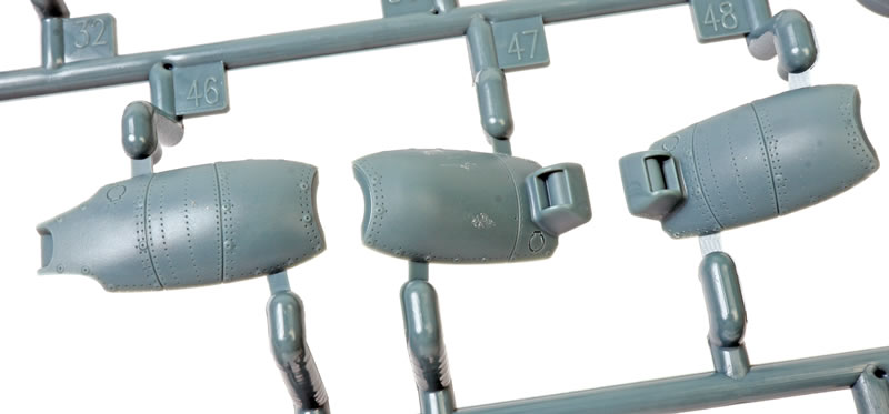As you remove the sprues from their bags you will note the exquisitely subtle and crisp surface textures. Recessed panel lines, rows of rivets and shrewdly executed fasteners. The photos do not quite do justice to the subtlty of the textures.