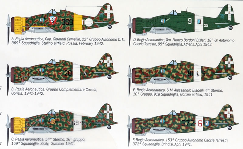 Markings are provided for six machines with typically striking Italian camouflage and markings.