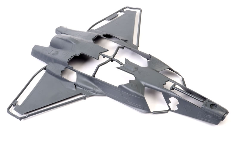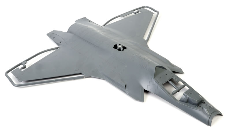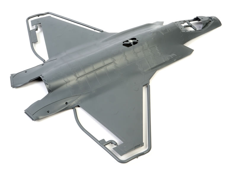 Surface textures are finely rendered, with panel lines and raised RAM panel demarcations defined. Italeri has paid particular attention to the complex faceting and subtle contours of the F-35’s stealthy airframe, which is no small achievement given the aircraft’s deceptively simple appearance.