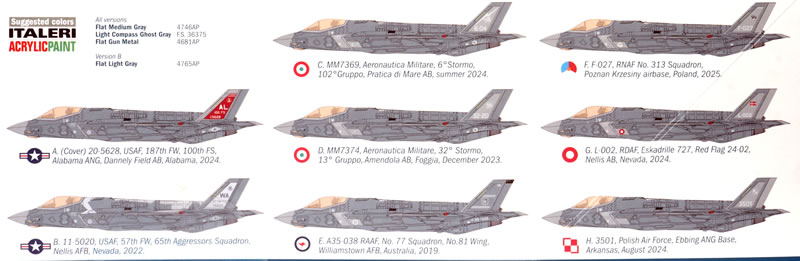 The decal sheet is comprehensive, offering markings for eight aircraft from a range of operators, including the USA, Italy, the Netherlands, Poland, Denmark, Norway and Australia.