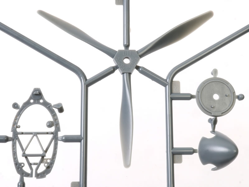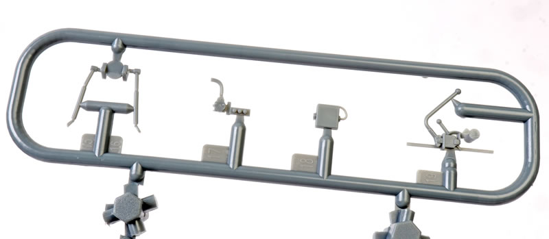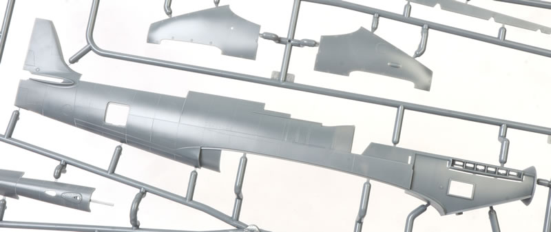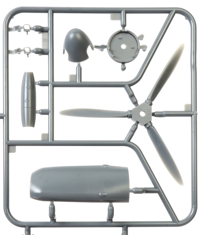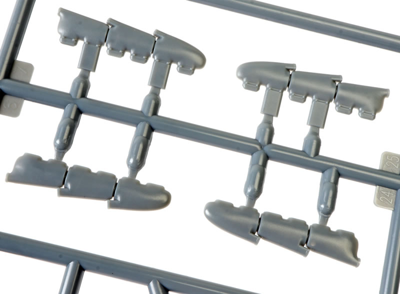 112 parts in grey plastic (less 24 parts marked “not for use”), ten clear parts, decals for two marking options, comprehensive instructions. |