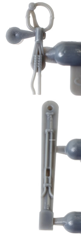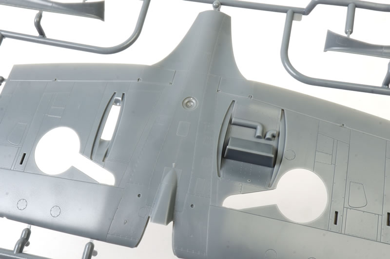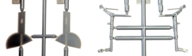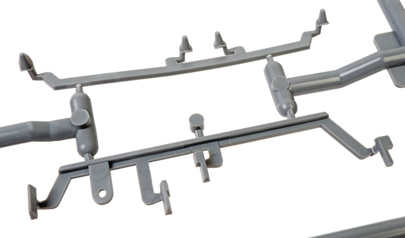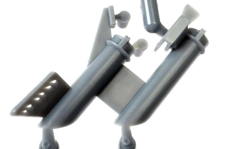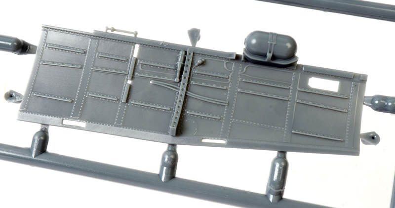 Wheel well walls are moulded as single parts for each side. A particularly nice detail is the inclusion of the early-style undercarriage down indicators as separate parts for each wheel well.