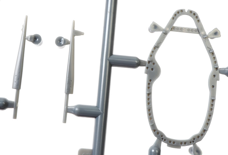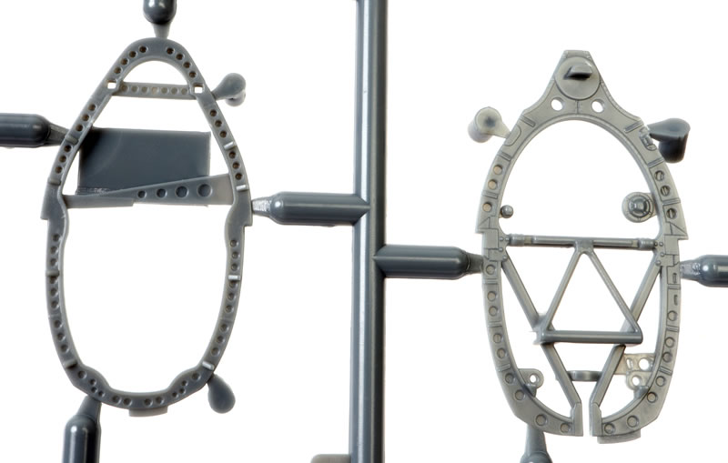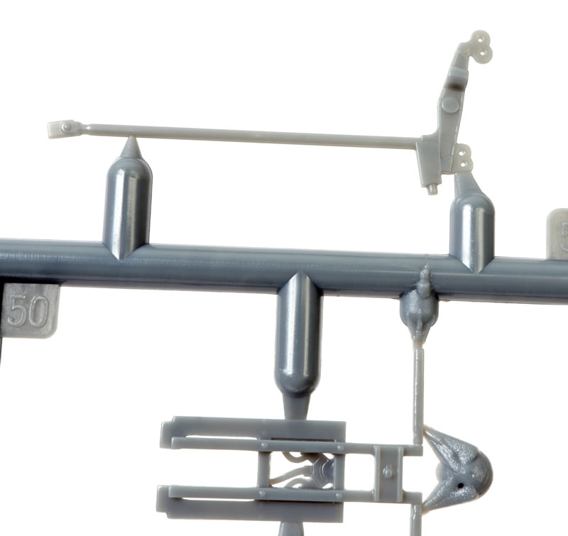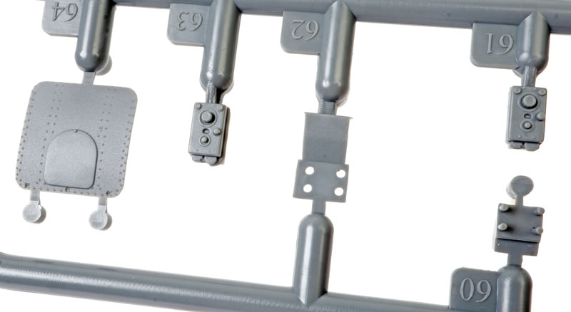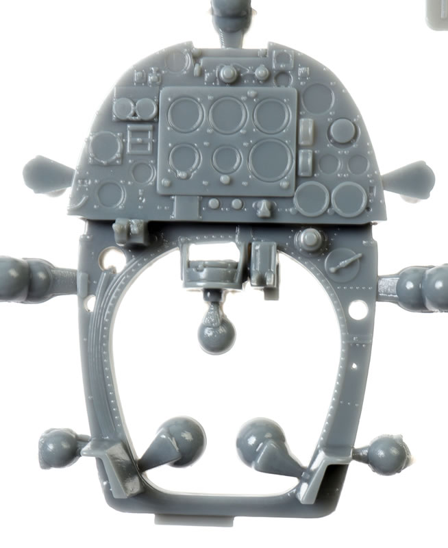The cockpit is a real highlight. The sidewalls, pilot’s seat and instrument panel deserve special mention. The instrument panel is a single solid plastic part with dial faces, bezels and switch detail crisply moulded in place. The compass and its mount are integrated at the bottom of the panel. Decals are supplied for the dial detail in singles, pairs and trios.