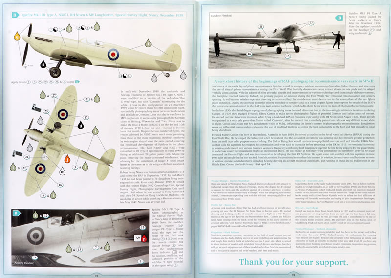 The instructions are as much an educational resource as they are a set of assembly directions. Numerous detail notes are accompanied by well-captioned reference photos and illustrations throughout. The 24-page full-colour A4 booklet presents the build over 16 clearly defined steps, supplemented by colour profiles, reference photos and notes for each of the two marking options, plus additional background material.