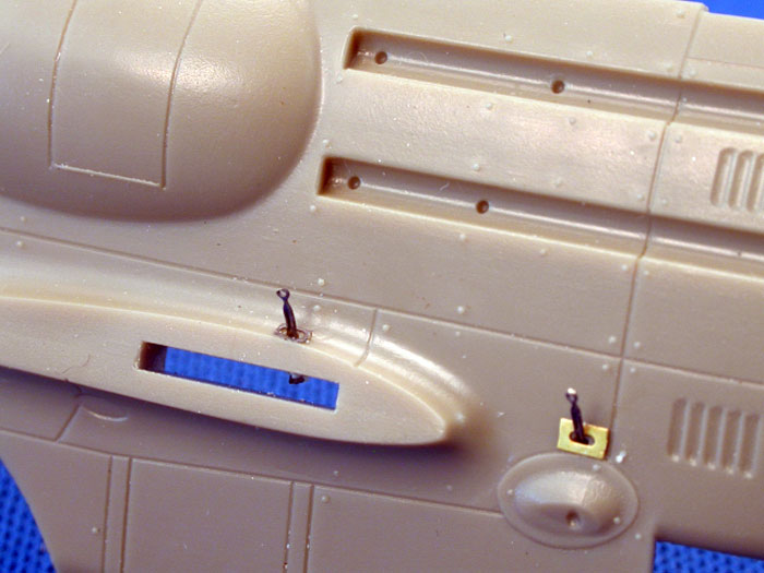 wires enter the fuselage by drilling out the holes, inserting Eduard