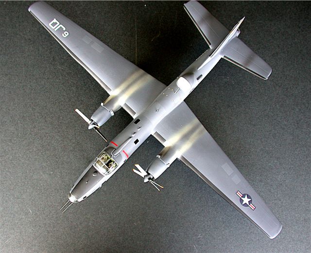 Engine Gray Testors Acrylic was lightened with white until the shade “looked about right” compared with photos. An ever so lighter secondary gray tone was airbrushed over various panels for contrast in such a large airframe.