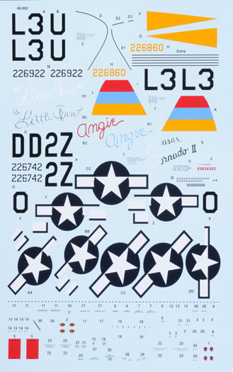 My only adverse comment on these two decal sheets is the 1/72 scale Kit Recommendations. Tamiya I whole heartedly agree with as they are obviously the best Jugs on the market, but Hasegawa? I would have thought both Revell and Academy would have rated higher than Hasegawa as the Hasegawa kits are very old and lack detail. However, I'm not a Thunderbolt expert and perhaps the Revell and Academy kits lack accuracy but I was under the impression they were highly thought of.