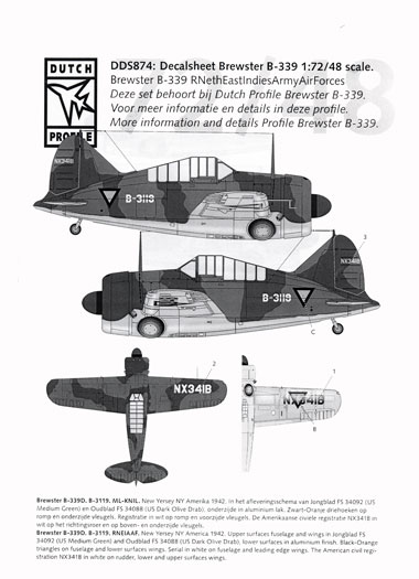 DDS874 Brewster B-339 is a new sheet from Dutch Profile. The sheet ties in with their recent release of Brewster B-339C/D-23 History Camouflage and Markings book that tells the story of the Brewster B-339 in service with the Royal Netherlands East Indies Army Air Forces (RNEIAAF) in World War II.