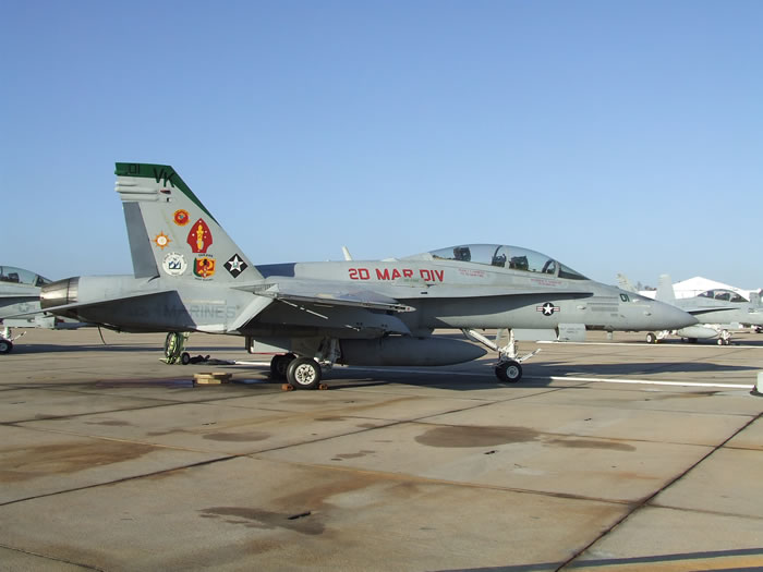 F/A-18D Bureau number 165411 Covey 05, named for Captain Kenneth Ford who holds the distinction of the being the first member of VMF-121 to make ace whilst flying the F4U Corsair. Again, in all lo-viz markings.