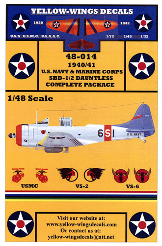 Yellow-Wing Decals: 48-014 - 1940/41 U.S. Navy & Marine Corps SBD-1/2 Dauntless