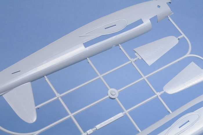 Excellent cockpit detail is provided by the way of 13 parts and most of this detail will be visible through the crystal clear canopy. There is a cockpit floor, centre console, rudder bar, seat, instrument panel, control column, front and rear bulkheads are provided. The detailed geodetic structure on either side of the inside of the fuselage has been faithfully replicated The external representation of the ribbing and geodetic design is nicely represented and will look good under a coat of paint.