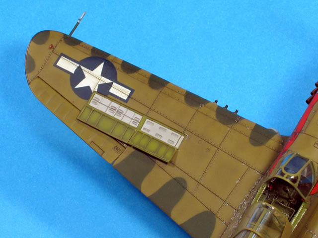 The nose art "parrot head”, the fuselage and wings stars are painted with masks.