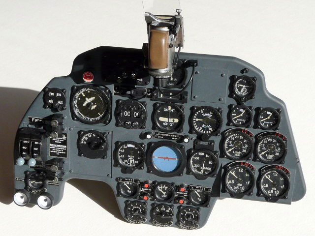 I have made the mounting bracket on the panel so that the sight is removable in the hope that Eduard will do more panels and I don't have to build another sight. The panel looks somehow flat without the sight now and the whole thing will be part of the Dragon 110 display as they should complement each other nicely.