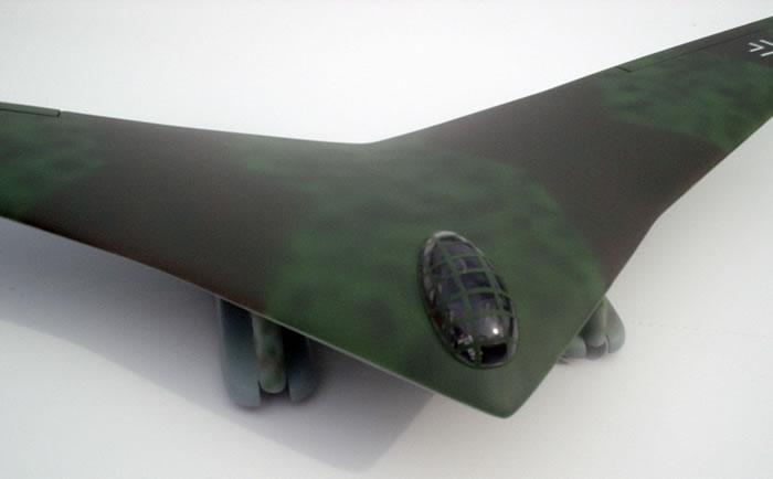 The wing was carved from pine, and vacuformed with .040 sheet styrene. Airbrushed with Master Model RLM 76/81/83/82.