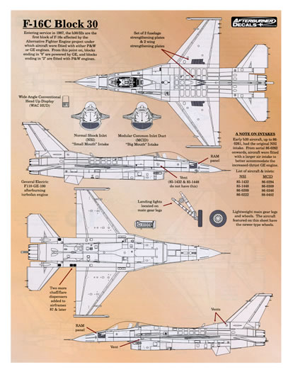 You are guided in decal placement by nine A-4 sized sheets that accompany the decals. Each option gets full colour left and right hand side profiles and there is a single generic upper and lower surface plan view to serve all options. You also get a load out diagram to assist you in correctly arming your 1/48th scale F-16. A nice touch is the inclusion of five “fact sheets” that illustrate and describe each of the different blocks on the sheet. As always with Afterburner Decals you are provided with plenty of supporting information to give you the whole story of the involvement of the Air National Guard and the Air Force Reserve in the various operations in Iraq too. The placement guides/information sheets have been printed on a thinner type of non-glossy paper than Afterburner Decals have used in their other releases Having said that though the illustrations are still of the same high quality type that typify their other sheets.