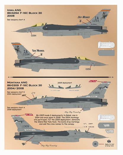 This sheet could also just as well be titled ANG/AFRES - An F-16 Opus, such is the size and completeness of the coverage of the United States Air National Guard and Air Force Reserves F-16s that operated out of Joint Base Balad, a former Iraqi Air Force Base near Balad in Iraq in support of Operation Iraqi Freedom.