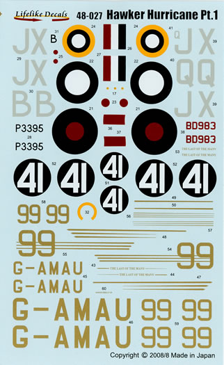 Catalogue Number: Lifelike Decals No. 48-027 - Hawker Hurricane Part 1