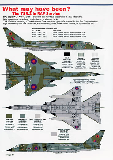 The sheet provides markings for 16 different RAF TSR-2s in all details of each are as follows: