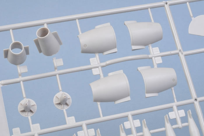The plastic parts are smooth, with crispy recessed panel lines throughout and no sink marks to be seen anywhere. Ejector pin marks on major and minor parts have mainly been thoughtfully positioned to be hidden when the model is built. The only exception that I can find are the interiors of the main gear doors, which do have a couple of faint circles, but these should be covered by the undercarriage legs. Some of the sprue attachment points are very thick though, so care will be required when removing parts and cleaning up the waste to avoid gouging the plastic.