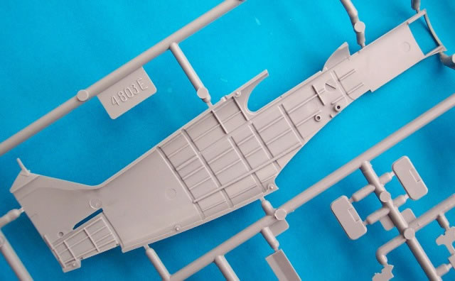 There is a slight downside to this in that the thickness of the plastic allows a couple of small sink marks to form under the cockpit. A dab of filler will easily fix this and this applies equally to those found on top of the wing root sections. Fortunately the wooden airframe means that not a lot of panel lines are present in these areas so no detail will be lost in the sanding process.