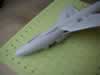 The mating of the nose to aft fuselage is straightforward with just a small amount of sanding and trimming to get a nice fit. The wings will require a little more work though. I found that I had to trim some of the plastic away from the leading edge of the wing where the wings slot into the recess in the fuselage. Once the wings are mated to the fuselage, they will apply downwards pressure to the upper intake (part 26) so as to get mate with the intake splitter plate. I used a little Mr. Surfacer™ on the wing roots and they came out really nicely, so well in fact I had no problem later with the dreaded high speed silver finish.