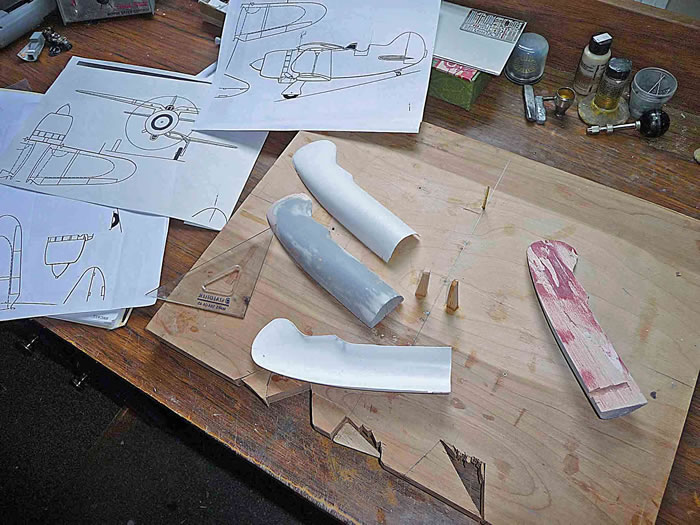 As with most of my scratch-builts, things began by carving balsa molds for the wings, fuselage, tail, and cowling.
