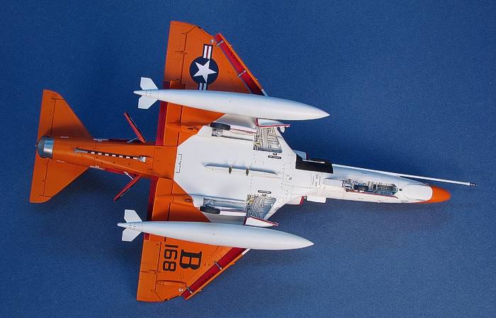 Note, there is an error on the Afterburner instructions concerning this aircraft's orange markings. They show the wing markings as being the same as the normal white and orange scheme, only with the wing flaps, spoilers, and ailerons painted orange. This is not correct. There should be a diagonal line across the wing like I painted my model.