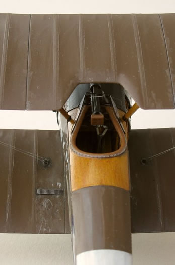 Some modellers have noted that the Le Rhone engine inlet manifolds aren’t long enough to reach the valves on the cylinder heads. Actually the problem is that front half doesn’t align exactly with the rear half – it needs to be rotated slightly, which is easy enough to do once the flat cutout on the inside is enlarged (see attached photo).