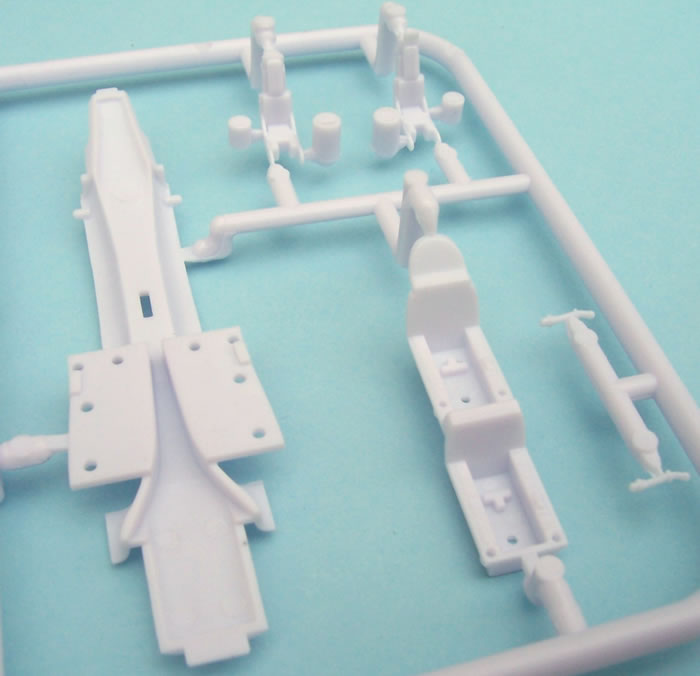 42 x white airframe parts, 14 x clear canopy & instrument panel parts, 2 x black stand parts (all parts are styrene), and decals for any 1 of 6 Blue Impulse team aircraft. |
