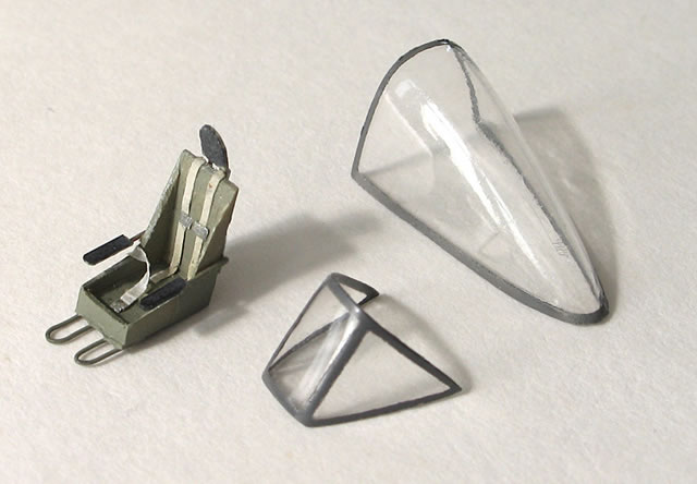 You can also see my attempt to improve the pilot's seat here. The original Revell seat was used and upgraded a bit to evoke the ejector seat.