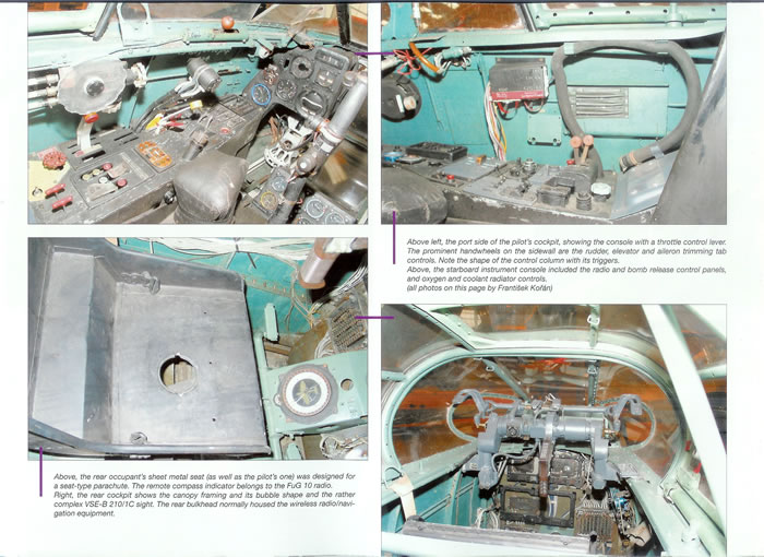 Inside consists of two pages dedicated to each of the 12 colour schemes. The first page for each set of markings has a photograph of the subject scheme and some brief notes concerning its background. Also on this same page are walk-around photos of a museum example and/or photos of service aircraft. The second page on each scheme has clearly printed and attractive 4-view colour plans. The last three pages of the book have clear colour close-up photos of a ME 410B-2, with an emphasis on the cockpit. These are good shots, but the cockpit walls are a blue-green colour rather then the expected RLM66 (although other parts of the cockpit are the expected grey colour). So I guess at the example photographed may have had an inaccurate restoration at some point, despite many of the components appearing unrestored. This is not a criticism of Mark 1, as obviously Me 410’s are thin on the ground these days!