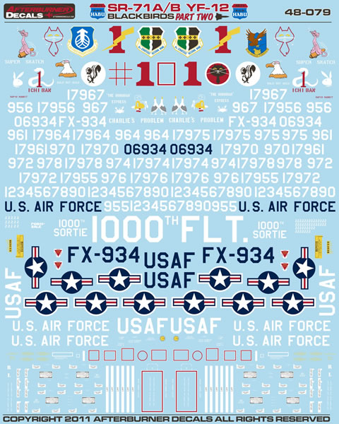 48-079 - "Blackbirds Part #2" is the second part of the SR-71 line, and features 14 incredible aircraft, including the YF-12 in 2 schemes, an SR-71B, and focuses on the early years of Habu operations including Vietnam combat jets, record holders and test jets.