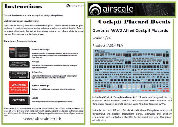 AS24 PLA - 1/24 Cockpit Placards and Dataplates (x 334)