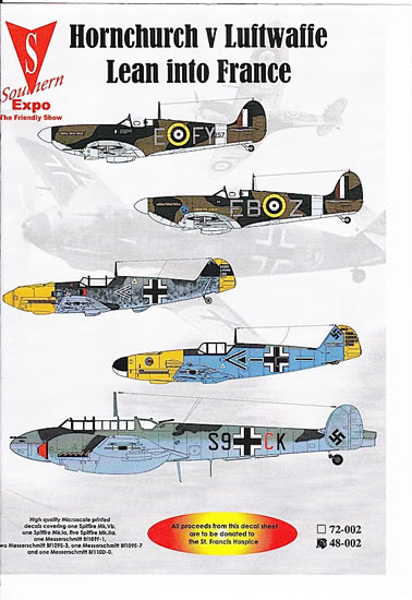 The sheet was well-received and prompted Southern Expo to continue the theme at this year’s show, with the release of “Hornchurch v Luftwaffe – Lean into France” in 1/48 and 1/72 scales.