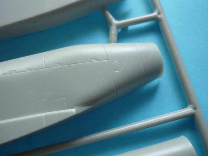The plastic is free from flash however, there are only three locating pins on the fuselage with none on the wings (only one tab to locate the wing to the engine nacelle) or any of the other sub components, and some care will be required when attaching the engine nacelles to the fuselage. There are a few ejector pin marks to clean up in the engine trunk, cockpit and wheel wells but these are minimal. While the plastic looks good and the panel lines subtle one feature of the SU-25 not present is raised rivets in certain areas, however in this scale and after looking at numerous images on line it is the panel lines that are apparent rather than the rivets unless you get up close.