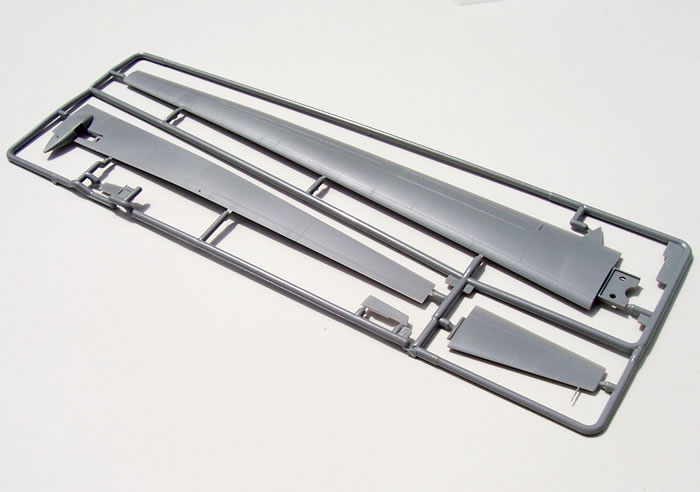 31 grey styrene airframe parts, 1 metal screw, and a decal sheet for 5 “What If” colour schemes. |