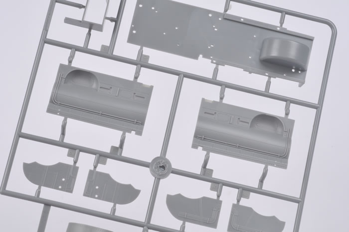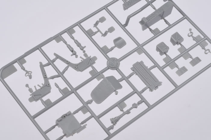 The undercarriage is nicely detailed and sandwiches metal struts that will allow the undercarriage to support the rather heavy weight of the completed kit. I am a bit worried about the vinyl tyres as they may flatten over time to a point that is not realistic due to the weight of the kit.