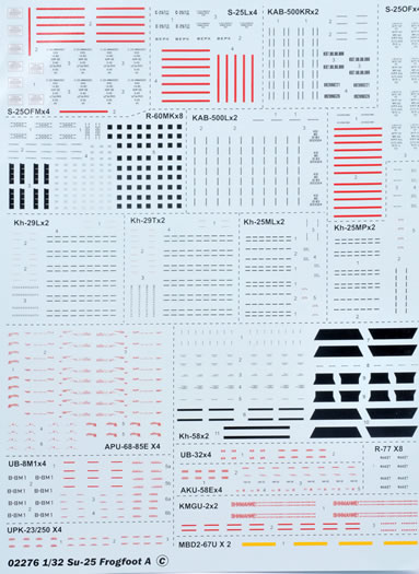 As I stated before the array of weapons included in this kit is nothing short of stunning. Trumpeter provides a very nice weapons load out chart for eight hard points. I am sure that the Frogfoot has ten hard points under its wings so check your references.