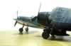The remaining cockpit parts were added (not an easy task through the folded wings, when will I ever learn patience? The drop tank of the CH kit was hand painted with Tamiya Dark Sea Blue. After sanding smooth after it had dried, it was added to the model along with the E kit’s landing gear, landing gear doors, pitot tubes, propellers, antenna, and guns and so on and so forth. Lots of stuff to break off now!