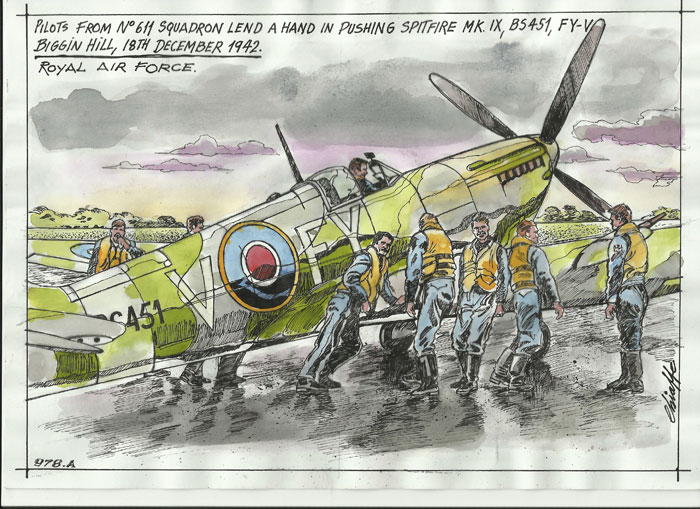 Here is my artwork of pilos from 611 Sqn RAF pushing a Spitfire during December 1942.