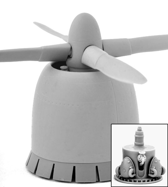 Propeller and Cowling Upgrade Set- Resin Black Widow improved engine cowlings and Curtiss Electric propellers- includes 2 cowlings with fine engraved panel detail, 2 extended reduction gear fairings, 4 magnetos, 2 spinners, and 8 cuffed prop blades.