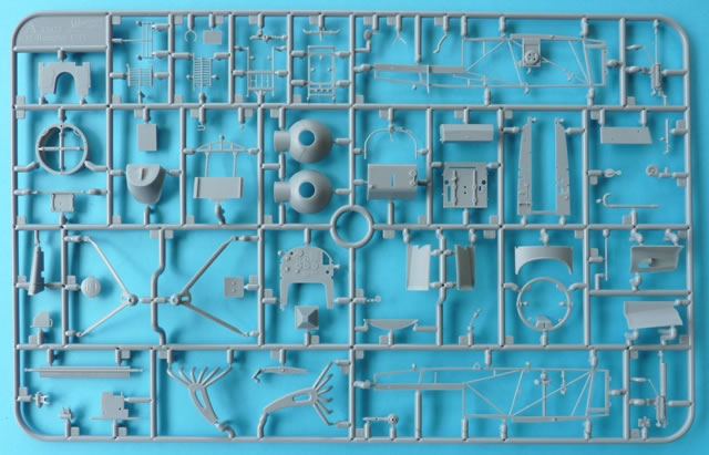 Inside the “early” edition, we find 13 sprues of plastic, one of which is clear to provide for the windscreen and camera lens. These are supplemented by a fret of photo-etched parts and a couple of decal sheets that allow you to choose between six interesting aircraft.