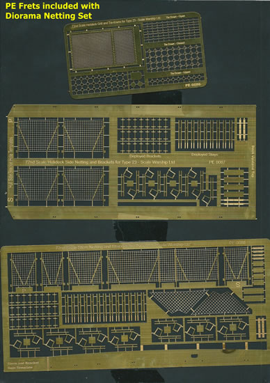 Therefore, supplying a partially complete helideck makes sense; as additional side net sets can be bought if a larger diorama is planned. It also keeps the basic diorama set at a more affordable price-point, because a full helideck would need five more side netting sets. A full helideck’s worth of PE frets and mask is sold as a complete set for £75.00. This is quite a saving on the £93.00 it would cost if the items were purchased individually. Scale Warship Ltd anticipates that the full set will appeal more to scale ship modellers than to diorama builders.