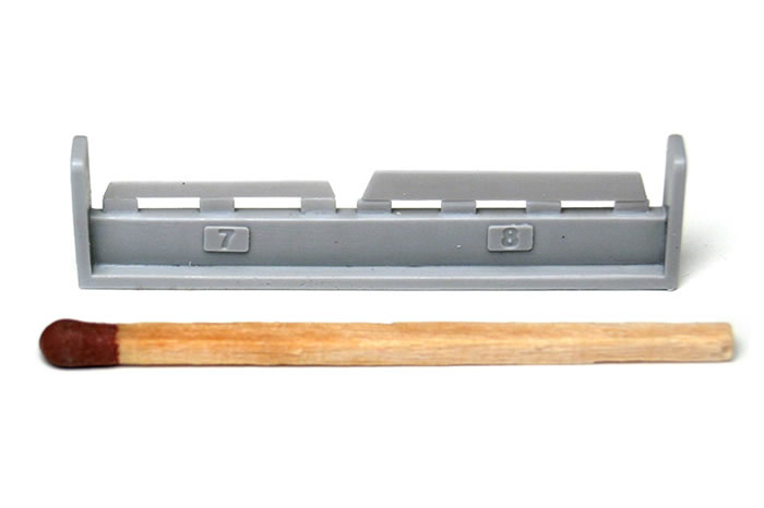 Eight resin parts, pre-cut paint mask, vinyl scribing template, and decals for three subjects. |