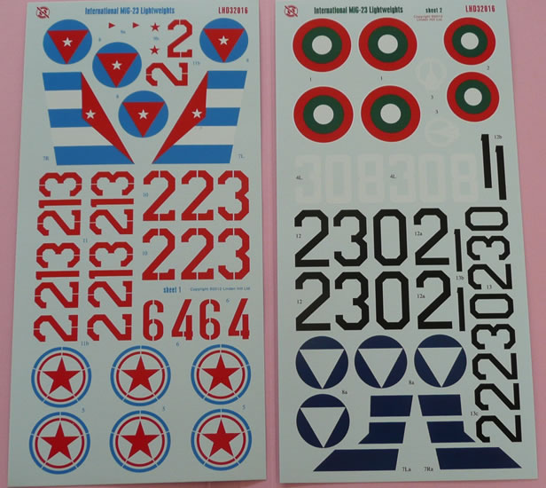 This sent follows on from the Afghansti Soviet MiG-23 MLD combat veterans set that I reviewed earlier this year, and this set is the first of two decal sets that will cover international users of the MiG-23 ML/MLA/MLD variants.